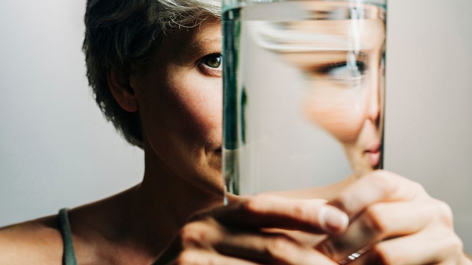 Frau mit durch Wasserglas verzerrtem Gesicht: Nicht in eine »KI-gestützte Glaskugelschau verrennen«