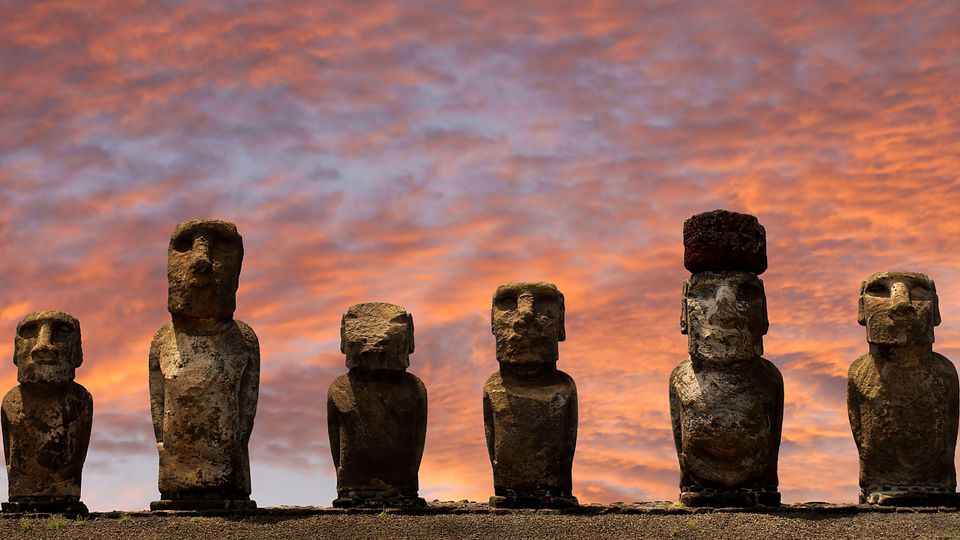 Moai auf der Osterinsel: Vermutlich sollten die Statuen mit den übergroßen Köpfen Ahnen symbolisieren