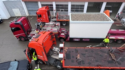 Am 7. Oktober 2025 wurde auf dem Albwerk-Firmengelände in Geislingen eine neue Umspannstation angeliefert. Mit dieser Investition schafft das Unternehmen die notwendige Grundlage für den Ausbau seiner Elektro-Ladeinfrastruktur und die Elektrifizierung seines Fuhrparks. Bereits am frühen Morgen rollte der Schwertransport auf das Gelände. Ein Kran hob die rund 32 Tonnen schwere Anlage an ihren Platz.