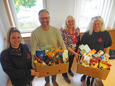 Zwei Kisten voll mit Lebensmitteln – Schokolade,Chips,Nudeln und vieles mehr – haben kürzlich den Weg ins Uhinger Rathaus gefunden. Verena Manz und die beiden Uhingerinnen Heidi Hönes sowie Sabine Wenzel vom Verein FreeFood brachten die Kisten kürzlich zur Stadtverwaltung,um zu zeigen,wie viele Lebensmittel ohne das Bestreben der Vereinsmitglieder im Müll landen würde. „Und das,obwohl sie noch genießbar sind“,betont Verena Manz,die die Aktivitäten der Lebensmittelretterinnen und -retter im Landkreis Göppingen koordiniert.