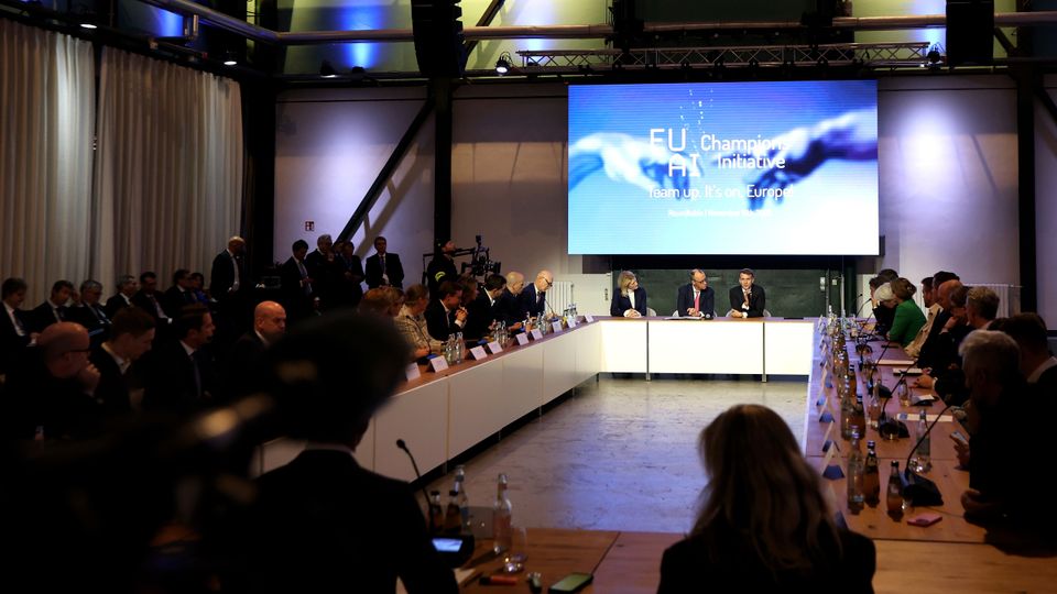 Unternehmer und Investorinnen beim Digitalgipfel mit Kanzler Merz und Frankreichs Präsident Macron