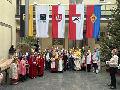 Es ist jedes Jahr eine schöne Tradition: Die katholischen Kirchengemeinden schicken Kinder und Jugendliche als Sternsinger durch die Stadt – und auch ins Rathaus. Baubürgermeisterin Eva Noller empfing am Dienstag,30. Dezember,25 Sternsinger im Foyer und dankte ihnen für ihren selbstlosen Einsatz für die Rechte von Kindern in der Welt.