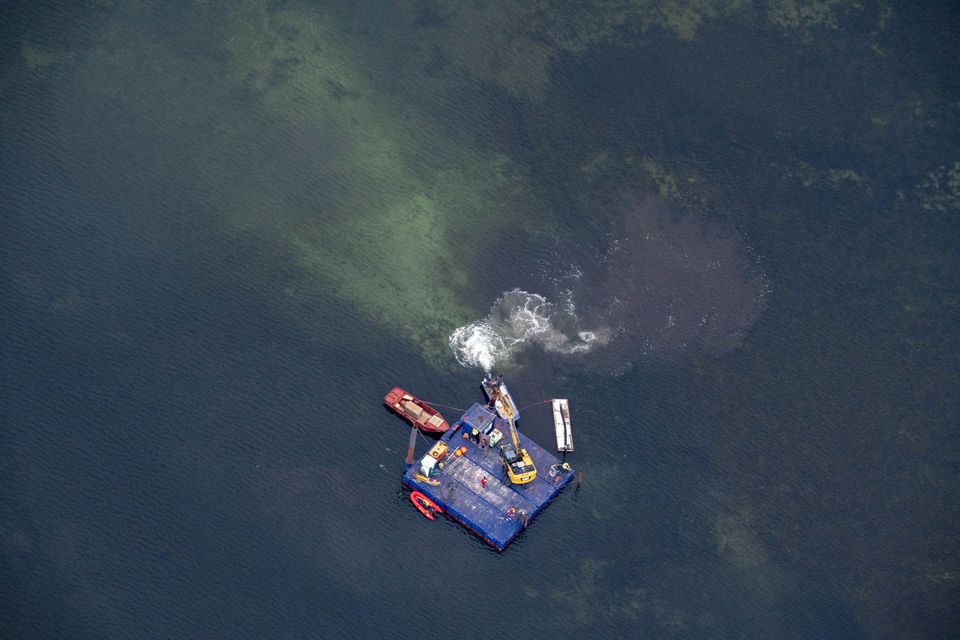 Seit Donnerstag laufen die Arbeiten der privaten Initiative,die das Tier lebend zurück in die Nordsee bringen möchte. Ursprünglich war der Start des Transports für Freitag geplant.